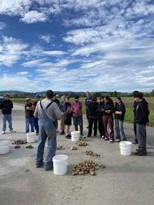 September 2025 - Drei Oberstufenschulklassen aus Frauenfeld besuchten anfangs September den Betrieb der Familie Büchi in der Osterhalde. Landwirt Hans Heiri Büchi erklärte den Schülerinnen und Schülern während zwei Stunden den Kartoffelanbau – von der Pflanzung bis zur Ernte. Im Zentrum stand das Ausgraben der Knolle mit anschliessendem Sortieren nach Grösse und einer Diskussion über deren Verwendung. Die Initiative ist Teil des Projekts PRE terrafood in Zusammenarbeit mit dem Verband Thurgauer Landwirtschaft (VTL). Sie soll als Angebot für den 3. Schulzyklus aufgebaut werden.